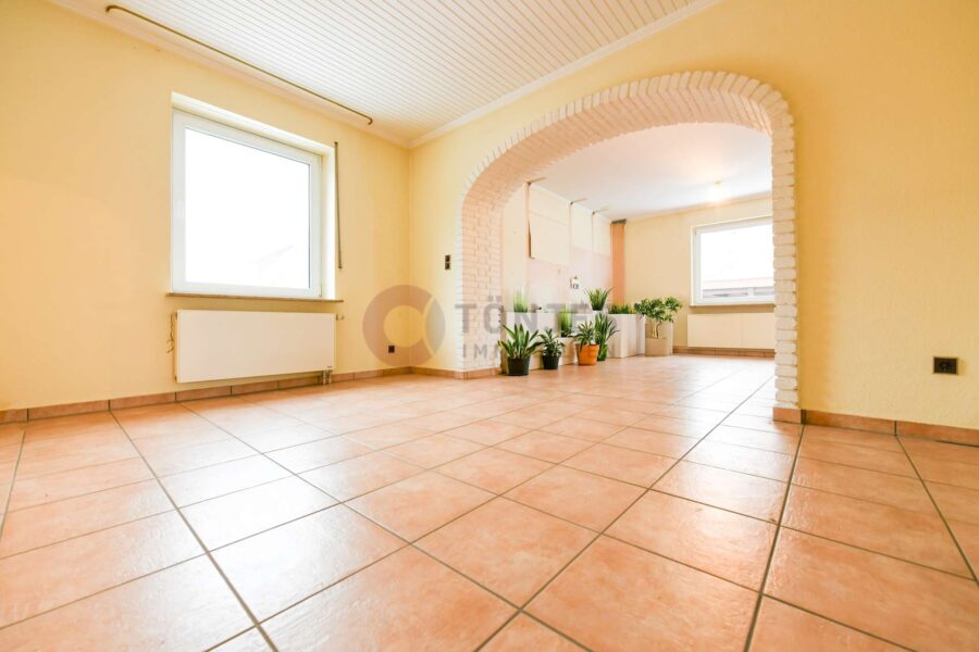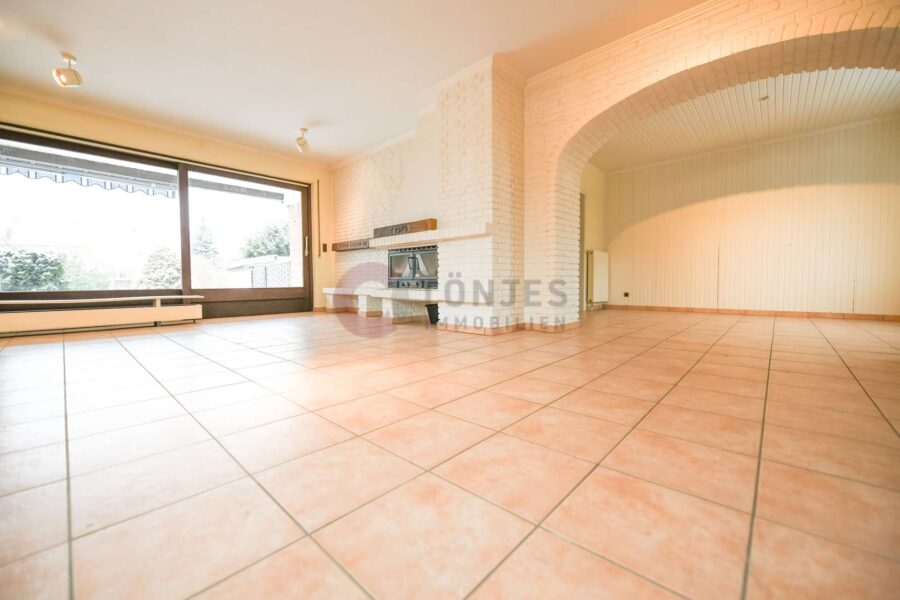 Die Immobilie hat ca. 123 m² Wohnfläche, die sich auf insgesamt 6 Zimmer über 2 Etagen verteilen. Herzstück des Hauses ist der offene Wohn- und Essbereich mit großen Fensterfronten, die den Blick in den Garten eröffnen sowie einem gemauerten Kamin. Vom Wohnzimmer aus gelangen Sie direkt auf die Terrasse und in den angrenzenden Garten.
